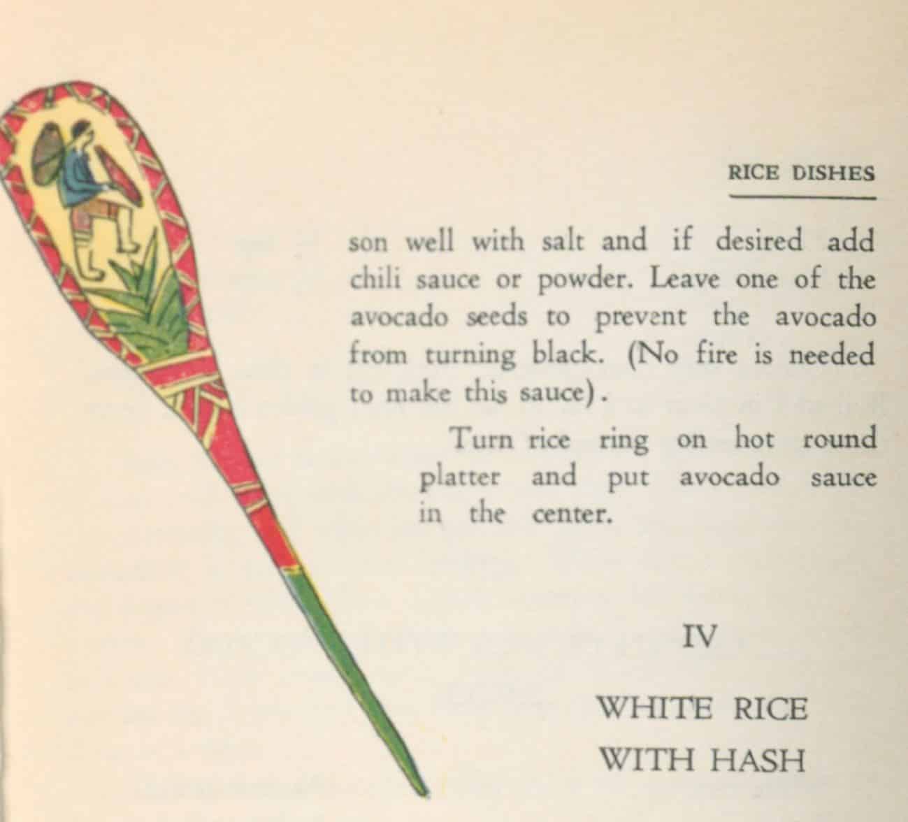 However, when I got to the end of the book, I found that even though there is no recipe index, there is an index of illustrations, with an explanation of what each item depicted is and a little information about it. This showcasing of the artwork is somewhat unusual for a cookbook, and reinforces the significant involvement and investment of illustrator Imelda Calderón. It also highlights the author and illustrator’s commitment to not only bringing “new and different” recipes to American kitchens, but to really introducing “a bit of our beloved country” to their readers. (front matter).